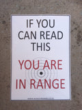 A selection of range signs, made of A4 water resistant vinyl with the option of having them mounted on 3mm aluminium board so they can be mounted onto a post or similar: